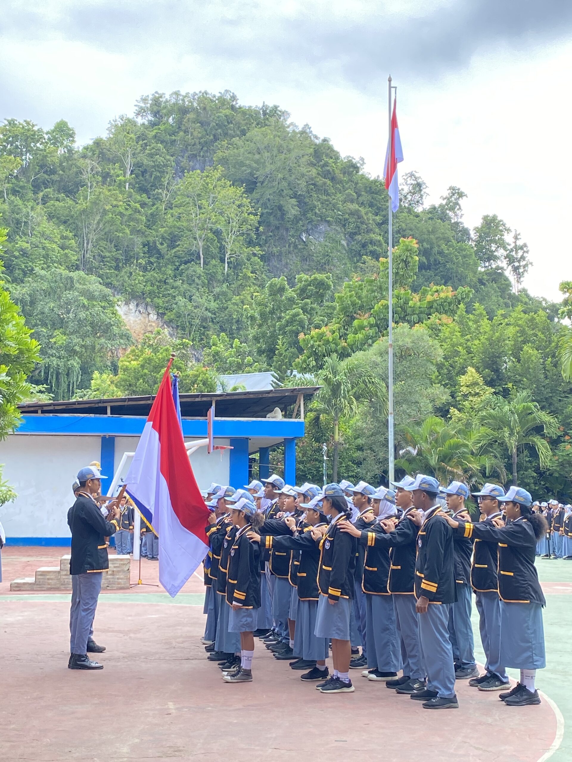Upacara bendera Senin, 9 Oktober 2023, Kepala Sekolah Bapak Anton Djoko Martono M.Pd melantik MPK(Majelis Perwakilan Kelas) tahun periode 2023/2024.