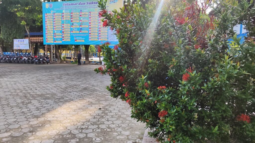 Ada tanaman dengan bunga merah cerah, di depan kantin sekolah dekat perpustakaan loh. Kalau kamu lihat bunga itu, namanya adalah Bunga Asoka (Ixora coccinea). Bunganya kecil-kecil tapi berkumpul jadi satu, biasanya berwarna merah mencolok. Selain memperindah, tanaman ini juga dikenal punya manfaat sebagai tanaman obat.
