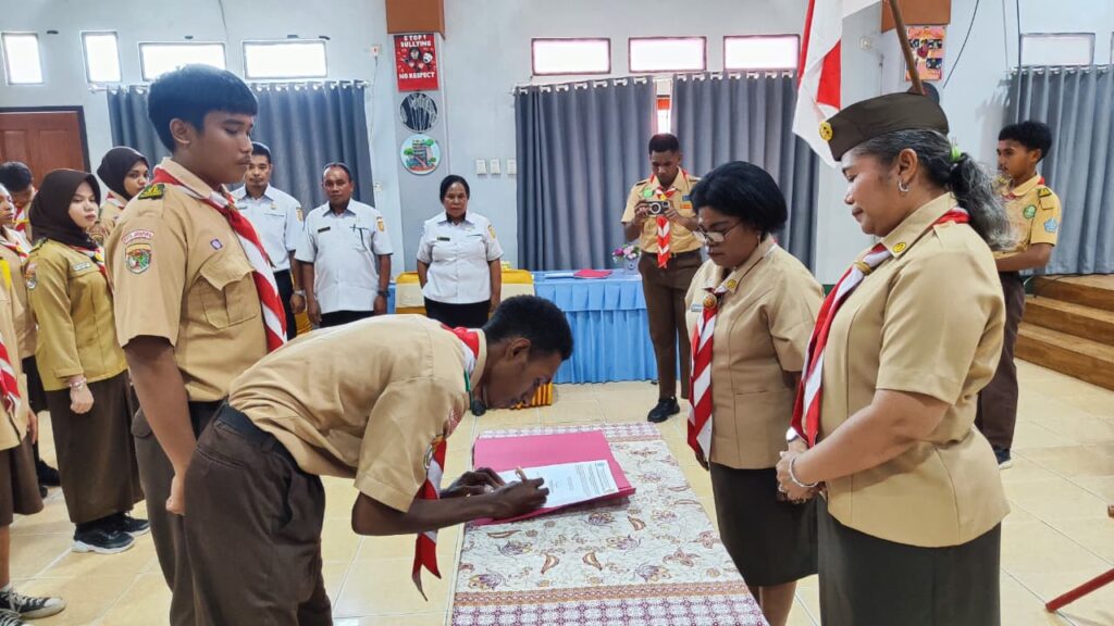 Jayapura, 4 Maret 2026 – Pengurus Dewan Ambalan Silas Papare Maria Walanda Maramis (SIPAMAR) masa bakti 2026 resmi dilantik dalam sebuah upacara yang berlangsung pada Rabu (4/3/2026) pukul 14.00 WIT di aula SMA Negeri 4 Jayapura. Pelantikan ini menjadi momentum penting bagi keberlanjutan kegiatan kepramukaan di lingkungan sekolah. Prosesi pelantikan dipimpin langsung oleh Pelaksana Tugas […]