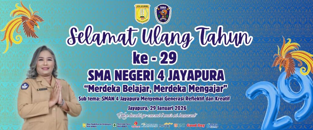 Lapangan SMA Negeri 4 Jayapura dipenuhi semangat sukacita pada 29 Januari 2026 dalam perayaan Hari Ulang Tahun (HUT) ke-29 SMAN 4 Jayapura. Momen istimewa ini menjadi ajang mempererat hubungan antarwarga sekolah yaitu peserta didik, guru, tenaga kependidikan, dan alumni, serta menumbuhkan rasa kebersamaan, kebanggaan, dan refleksi untuk terus meningkatkan kreativitas dan prestasi. Kegiatan diawali dengan pembukaan oleh […]